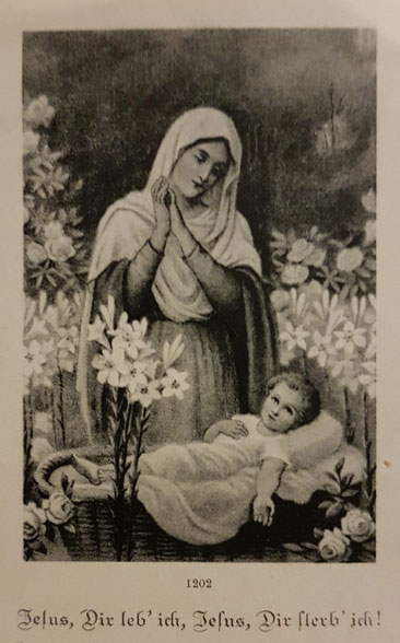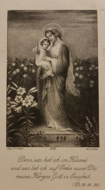 O Maria, siehe du bist so mächtig bei Gott, es genügt, dass du ihm sagst, du bist seine liebe Mutter, du bist voll seiner Gnade. Was könnte dir der Herr alsdann wohl abschlagen? O allerschönste Königin, wir wagen es nicht zu hoffen, dich hier auf Erden noch einmal zu sehen. Aber wir wollen dich im Himmel sehen. Diese Gnade musst du uns erlangen. Wir hoffen ganz sicher, dass du es tun wirst. Amen.
