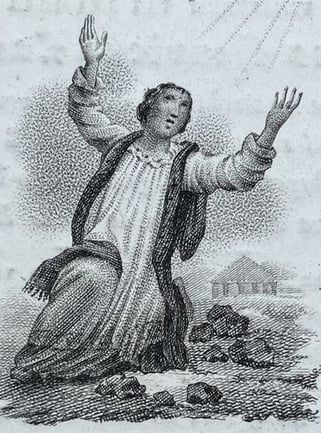 Damals geschah ihm Folgendes: In einem wilden unbesuchten Bergtal in den Appeninen im Florentinischen Gebiet schläft der heilige Romuald, als er den Berg Sykia verlassen, ermüdet von der beschwerlichen Reise. Außer dem Rauschen eines Waldbaches, an dessen Saum er eingeschlafen war, schweigt alles weit in der großen Wildnis um ihn her. Da werden dem Schwerbekümmerten die Augen des Geistes aufgetan, und er sieht, wie einst der Patriarch Jakob, der mit schwerem Herzen das Haus seiner Eltern verlassen hatte, eine Leiter, die von der Erde bis zum Himmel reichte. Die Leiter hinauf stiegen seine Jünger in weißen Kleidern. Romuald erwacht, eröffnet seinen Jüngern das Gesicht, gibt ihnen eine weiße Kleidung und stiftet nach dem Namen des Ortes Kamaldoli, wo er die Erscheinung hatte, den Kamalduenser-Orden.